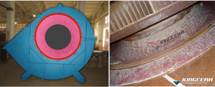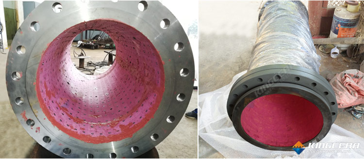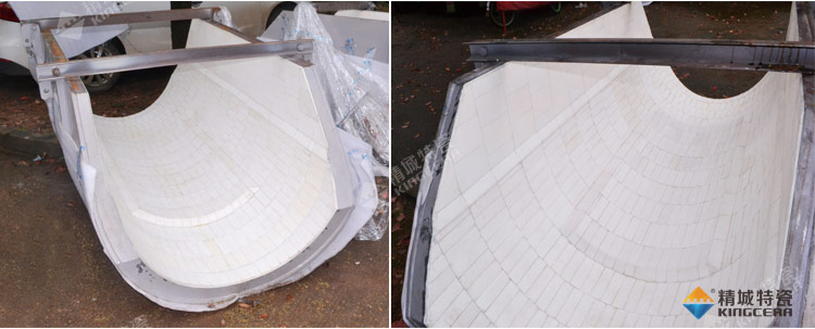 3. 燕尾裝卡式:燕尾裝卡式是將兩條梯形鋼條平行焊接在設(shè)備上,形成燕尾槽,然后將燕尾陶瓷穿進(jìn)燕尾槽的一種裝置方法。此種方法技術(shù)老練牢靠,可耐700℃高溫,格外合適運動部件,如風(fēng)機(jī)葉輪的防磨。可是此種技術(shù)復(fù)雜,只合適平面施工。